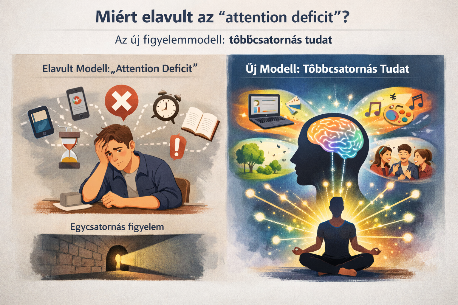 Az „attention deficit” – vagyis figyelemhiány – kifejezés egy régi világból származik. Egy olyan korból, amikor az ideális ember csendben ült, hosszú ideig egyetlen dologra koncentrált, és lineárisan gondolkodott. Az iskolarendszer, a munkahelyek és a társadalmi elvárások is erre a modellre épültek.